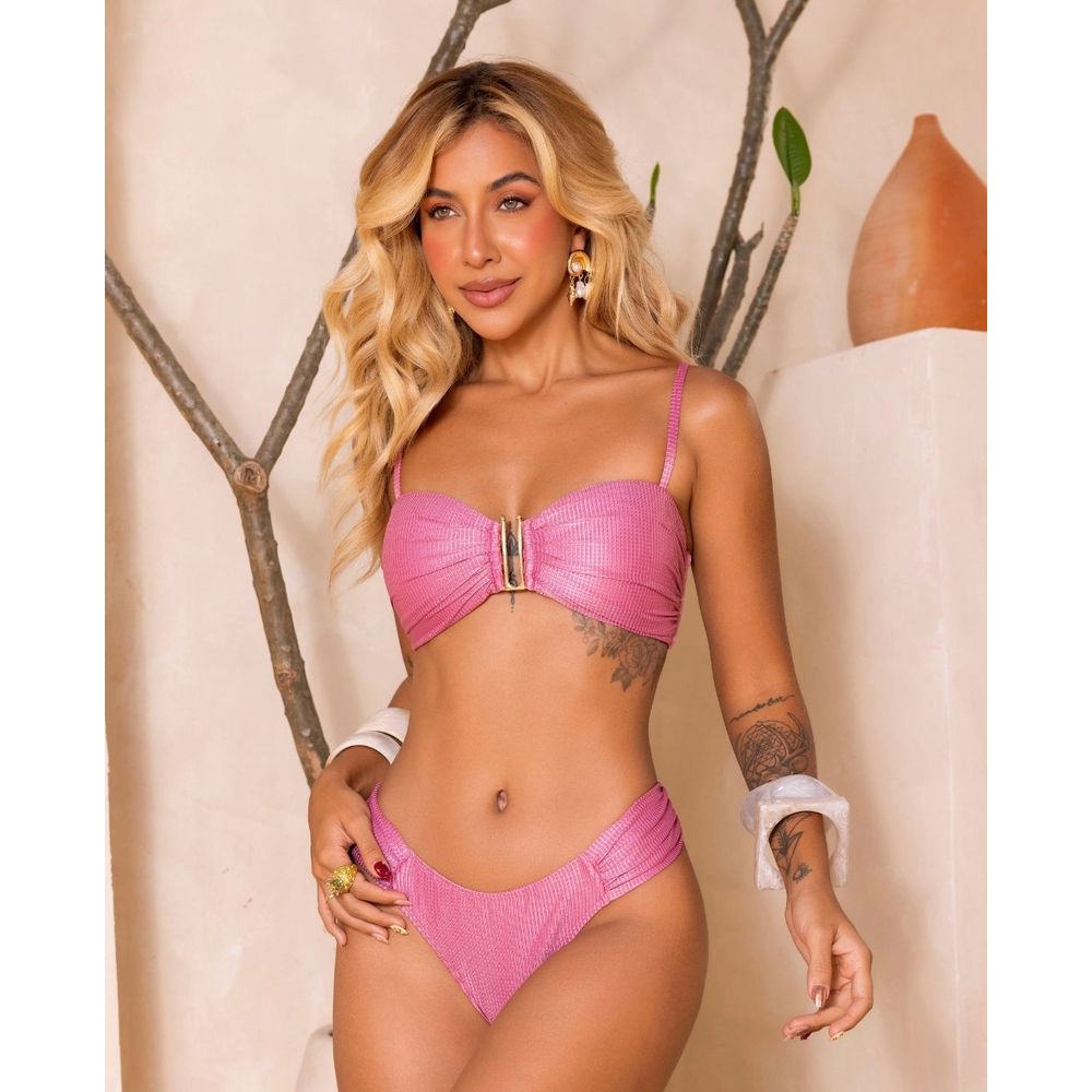 Biquini tomara que caia com alças opcionais modelagem camisetinha e bojo sendo flexivel e acessorio entre os seios com banho especial para não oxidar nem desbotar. Amarração nas costas. Tanga sendo fio duplo e laterais modelo borboleta.